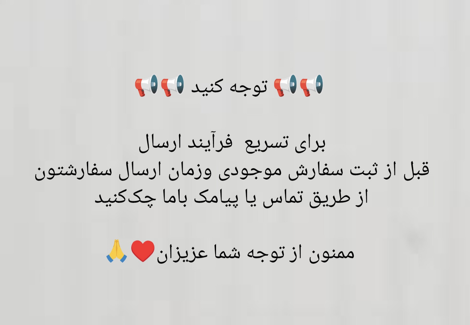 برای عملکرد بهتر و سریع تر از فیلتر شکن استفاده نکنید💥 📌❌️حتما حتما به زمان ارسال سفارش دقت کنید 🚫 ❌️ برای دریافت کد پیگیری ۳ روز بعد از زمان ارسال اقدام کنید با تشکر🙏