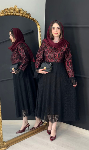 پیراهن یلدایی تافته و دانتل مدل فروغ