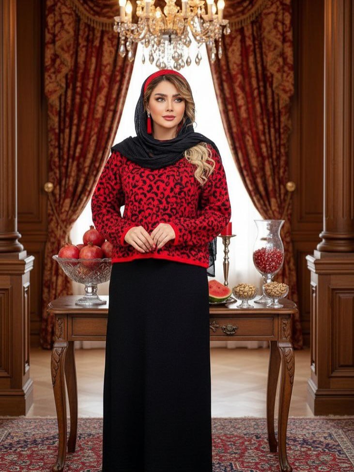ست یلدایی جلیقه دامن طرح انار نازگل