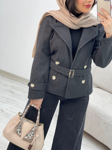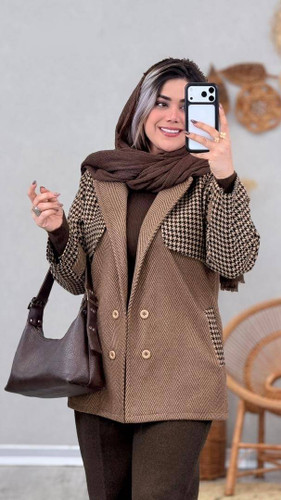 پالتو ترکیبی فوتر جناقی و پشمی مدل کاملیا