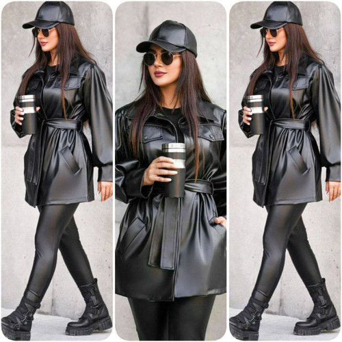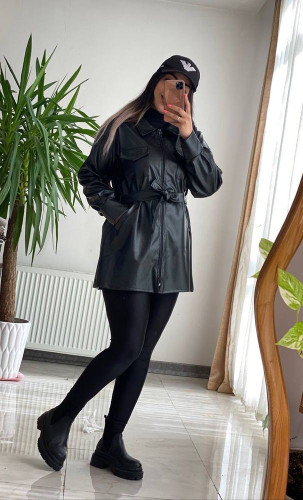 پالتو چرم کمر گت دار مدل گیتا همتا
