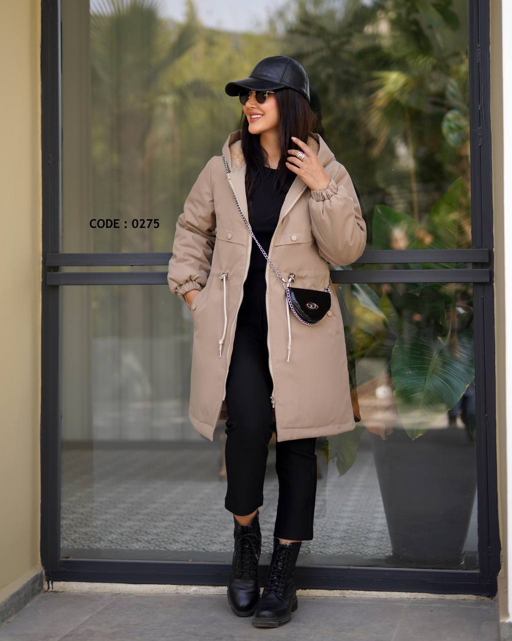 کاپشن کلاهدار کتان داخل پشم شیشه سایز بزرگ