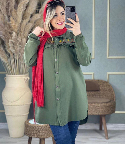 مانتو عبایی مزونی شانتون خامه دوزی جلوباز