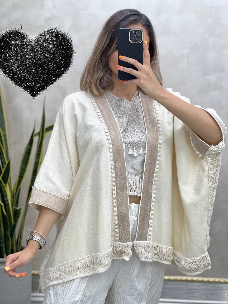 مانتو عبایی مزونی شانتون خامه دوزی جلوباز