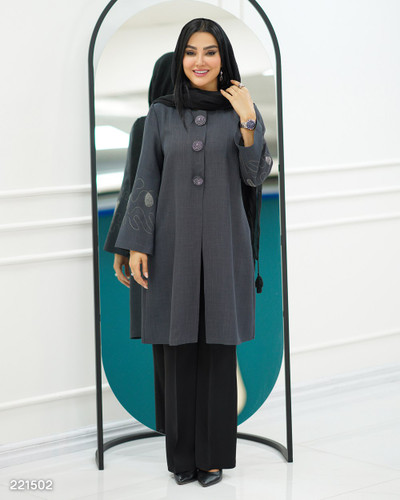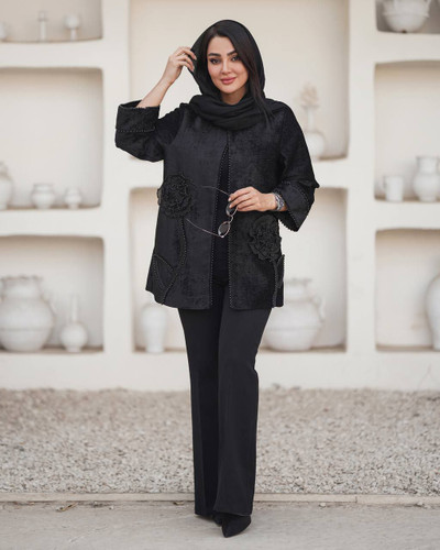 کت مزونی یقه گرد مخمل مروارید دوزی گل اندام