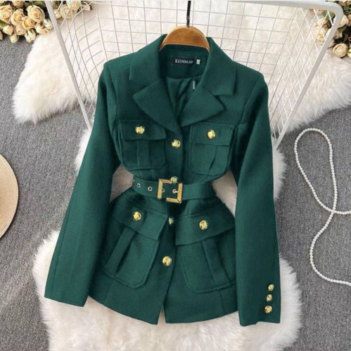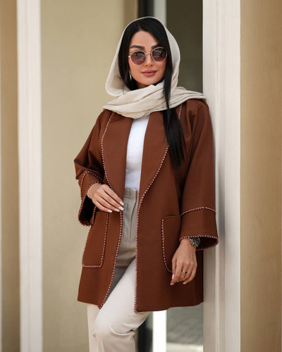 کت مزونی مازراتی یقه آرشال نوار مرواریدی دوجیب