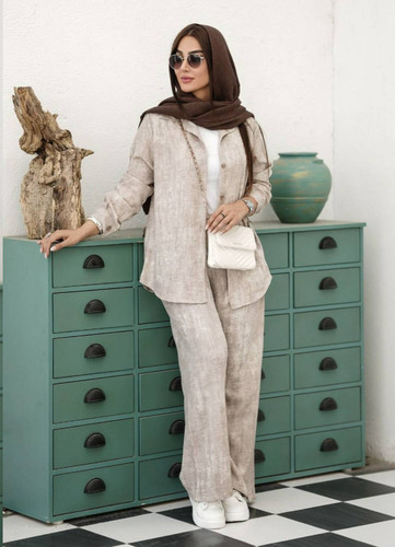 ست مانتو شلوار شانتون گندم