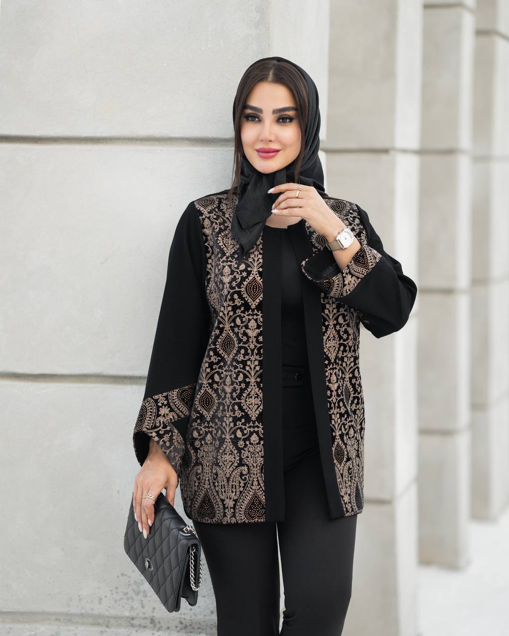 کت سارافون تافته و کتان خرجکار کریستال دوزی غزال