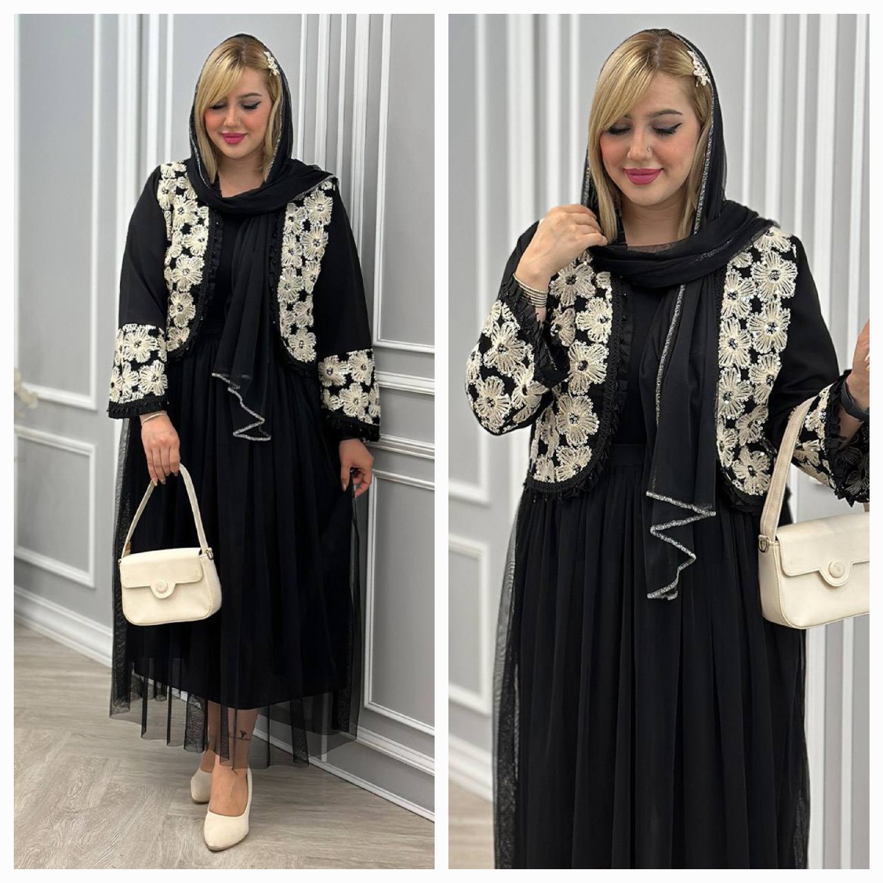 مانتو عبا الیزه و خامه دوزی گل گندم گیسو ترنم
