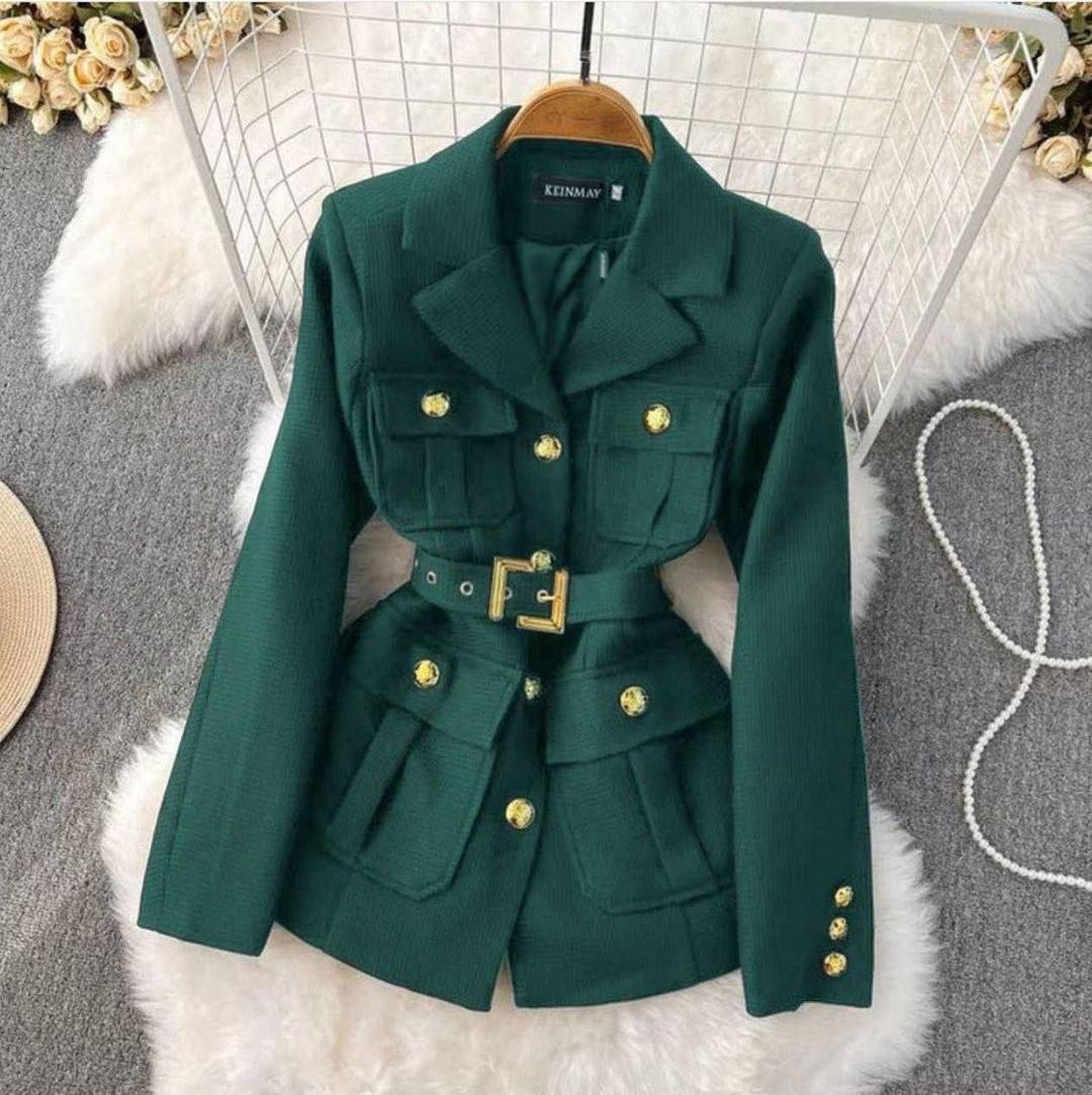 کت مزونی مازراتی یقه آرشال نوار مرواریدی دوجیب