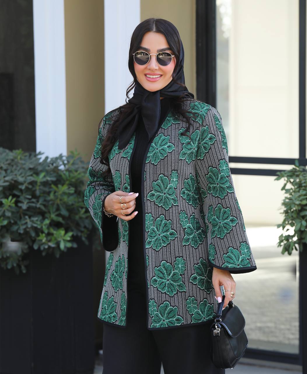 کت مزونی یقه گرد مخمل مروارید دوزی گل اندام
