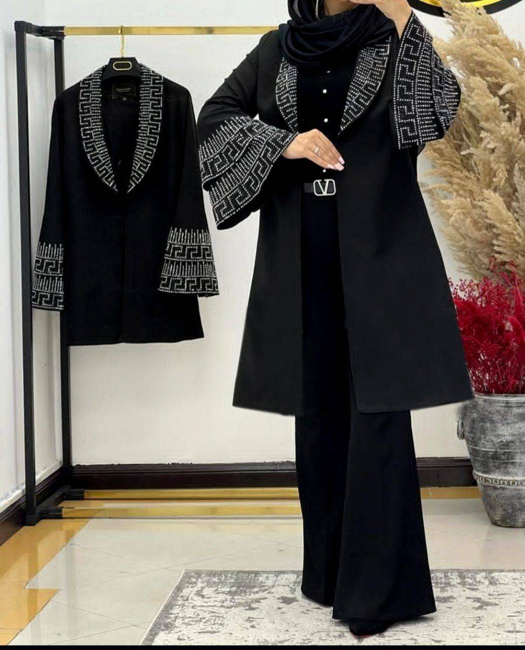 ست مانتو کتی و شلوار مجلسی شیک آستین ورساچ