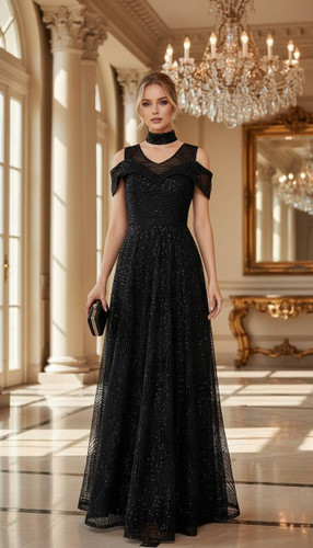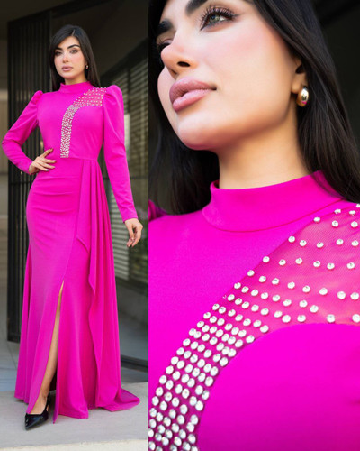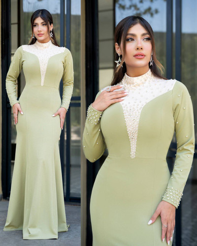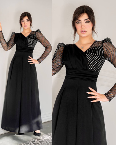 پیراهن مجلسی بلند غواصی و فلوک شاین مدل یاسمن