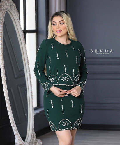 پیراهن مجلسی ساتن و پولک ترک مدل ترمه