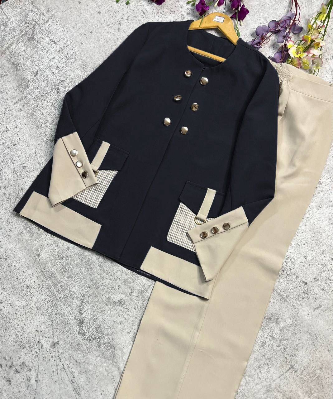یکی از شیک ترین و به روز ترین کت شلوارایی ک میتونی داشته باشی این مدله😍 متریال و دوختش بینظیره و انقدتک و خاصه که تن کسی نمیبینیش😌منحصربه فردخودت✨