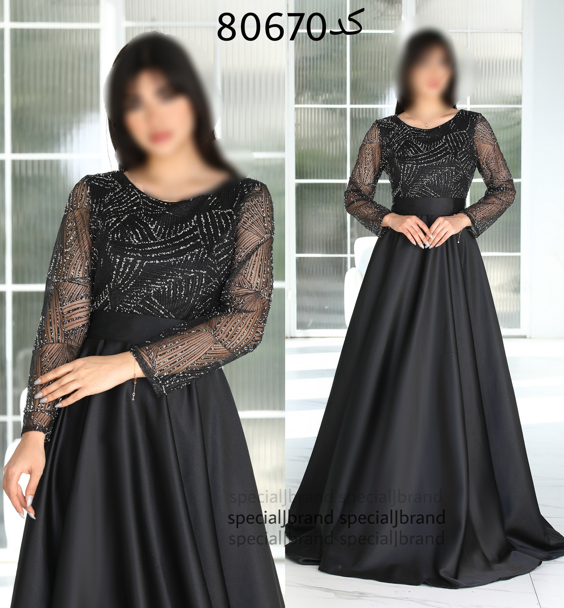 توضیحاتجنس : حریر سنگ کاری و ساتن (قد۱۷۰) (پشت زیپ) (کمربند داره)