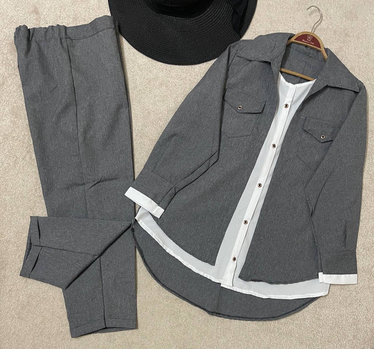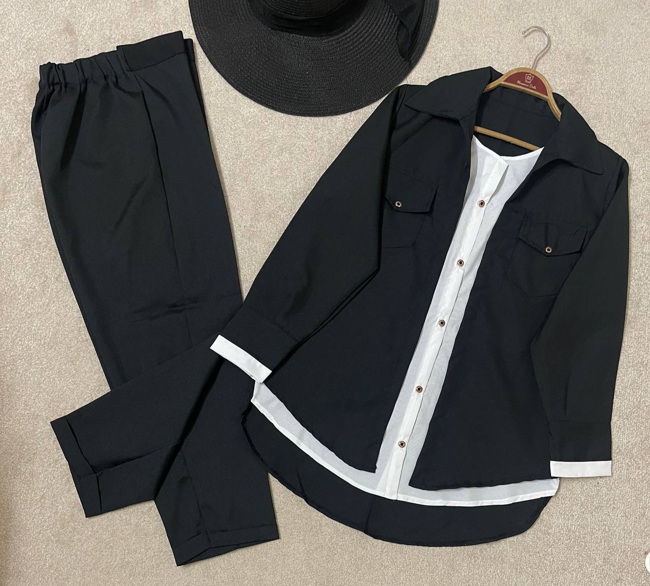 ✅فری از 38 تا 46-48 - قد مانتو جلو حدود 77 پشت حدود 84 - دورسینه حدود 120 - قد استین از یقه 72 - قد شلوار حدود 90 - پشت کمرشلوار کش میباشد - شومیز به مانتو متصل میباشد