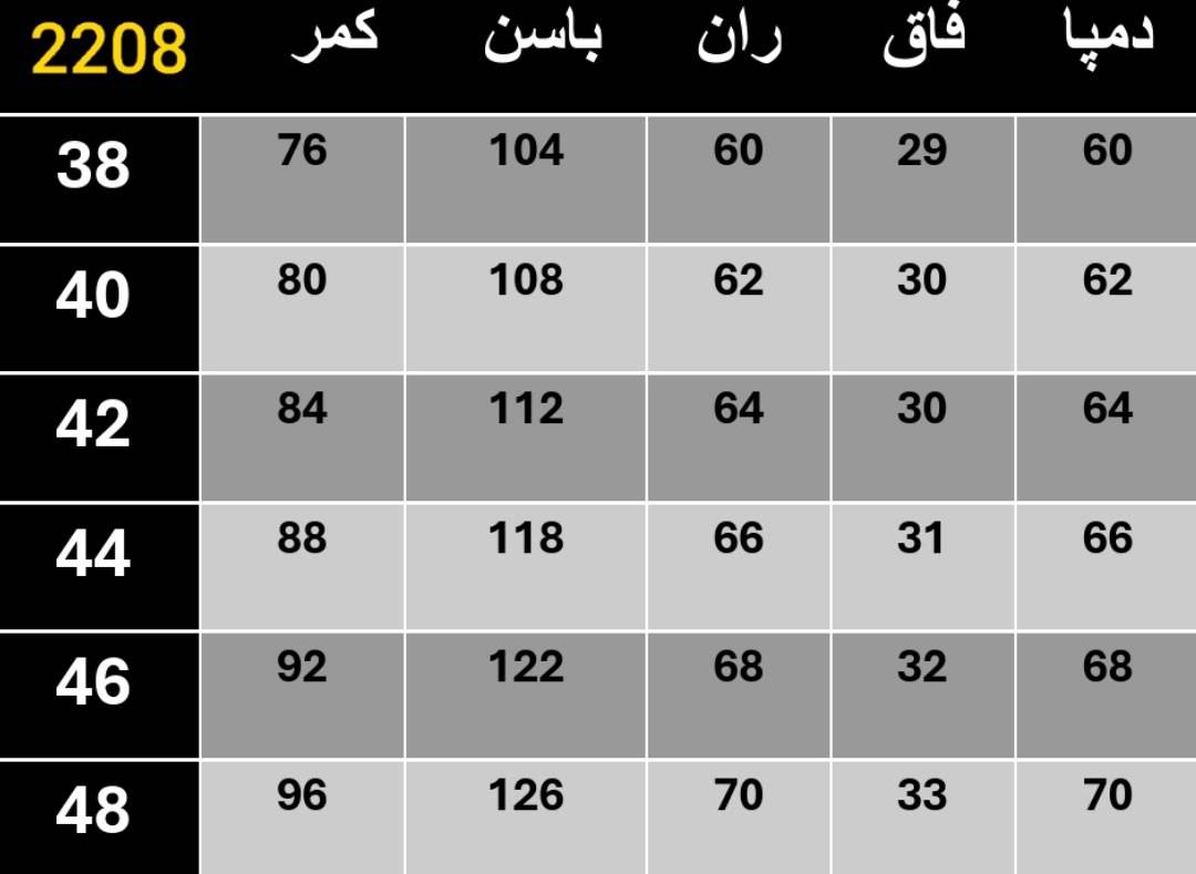 سایز ها : 38, 40, 42, 46, 48