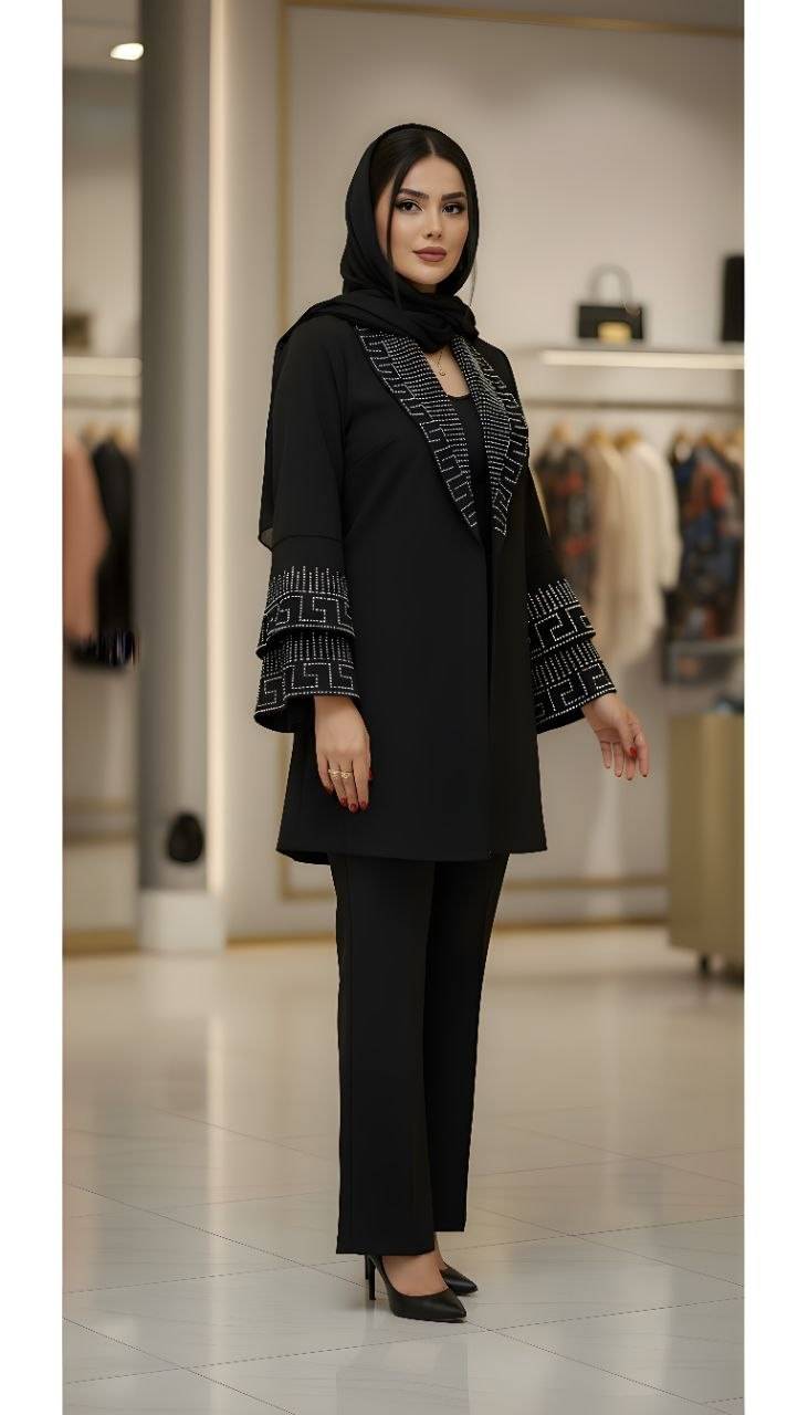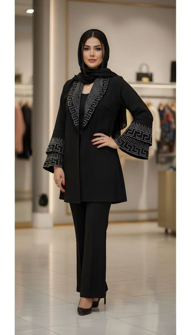 ست مانتو کتی و شلوار مجلسی شیک آستین ورساچ