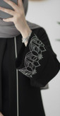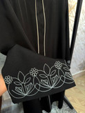 🗒️توضیحات :آستین ها گلدوزی شده،جلوی کار غزن خورده و قیطون دوزی شده،کاملا مشکی و ریزش دار، بدون ابرفت بدون پرزدهی
