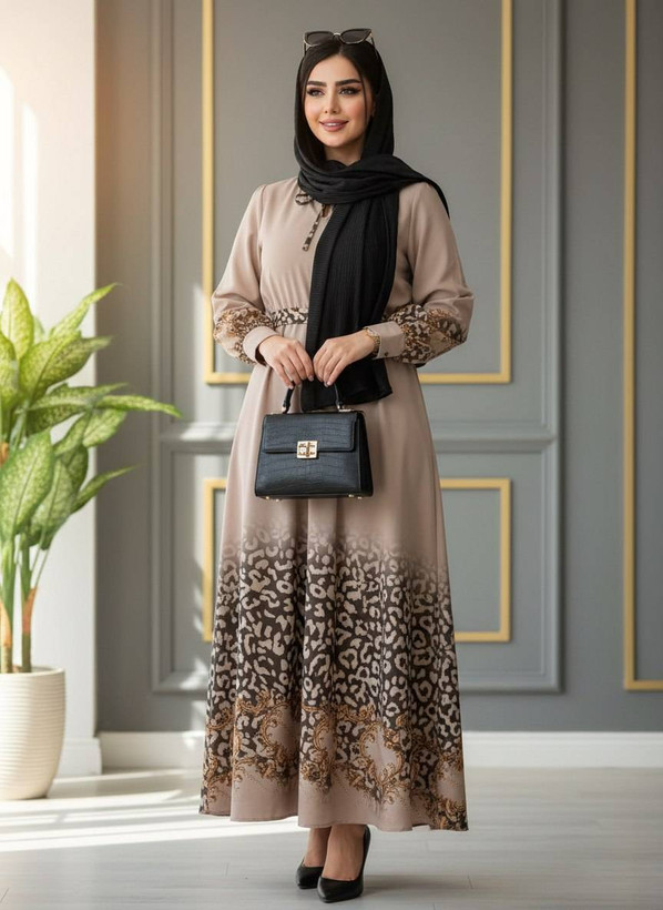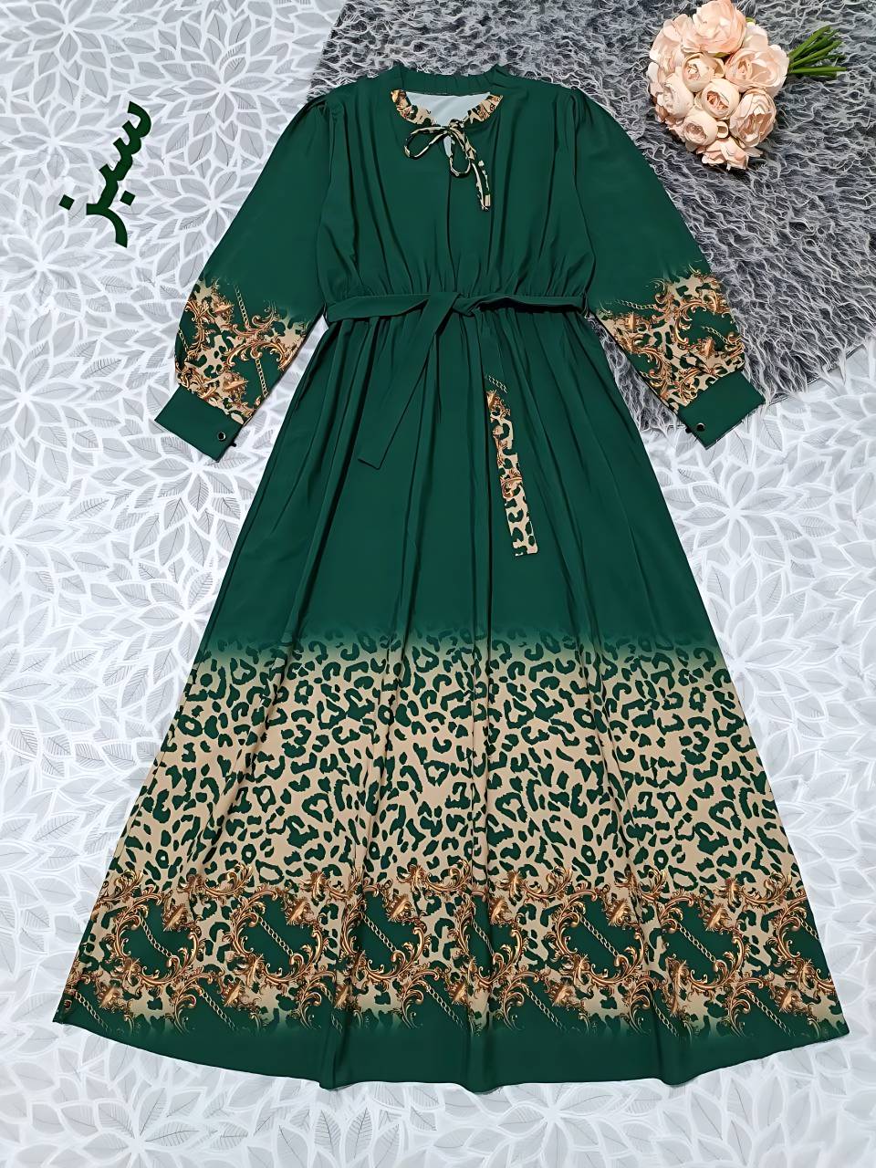 پیراهن ماکسی پلنگی زنجبری سوپر سافت درجه یک