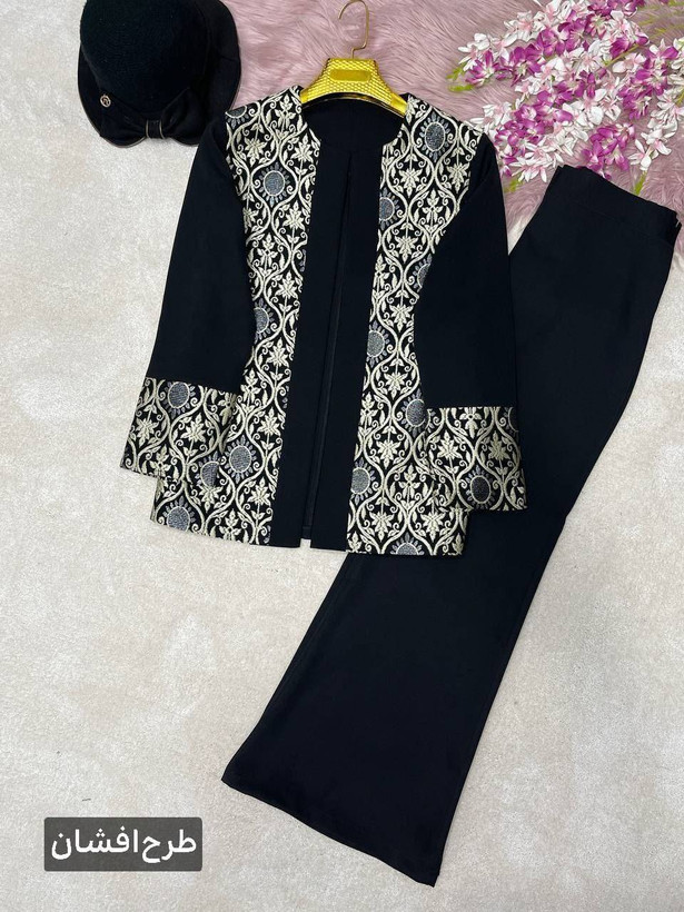 ست کت شلوار مازراتی لایی کوبی شده خرجکار تافته لمه ملورین