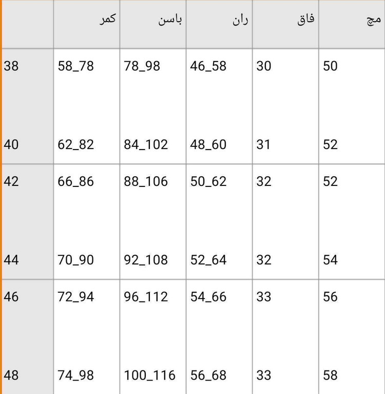 📌سایزبندی ۴۰ تا ۵۰