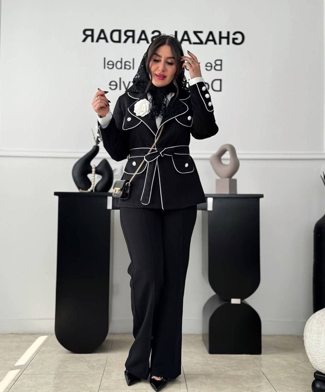 ست مانتو شلوار عیدانه کتان کشی اعلا خوش دوخت مدل رادین