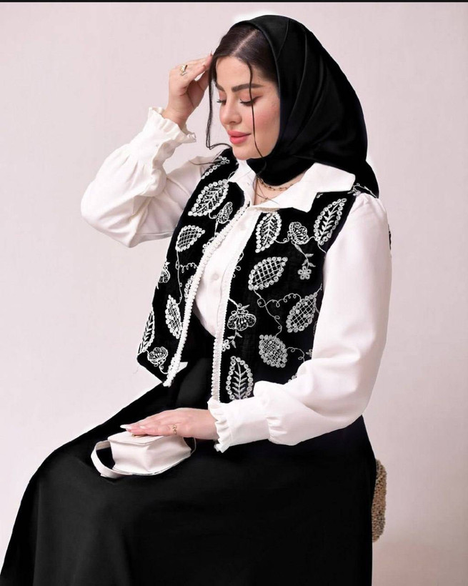 🧵جنس : جلیقه کرپ لینن سوزن دوزی درجه یک طرح برگ