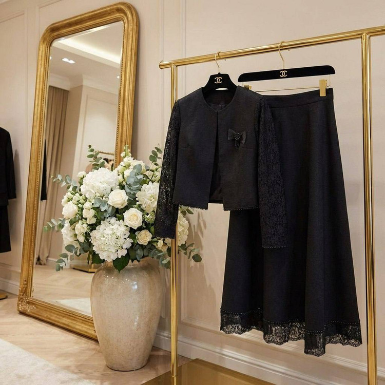 کت و دامن دانتل مروارید دوزی ظریف کتان لمه اعلا سها