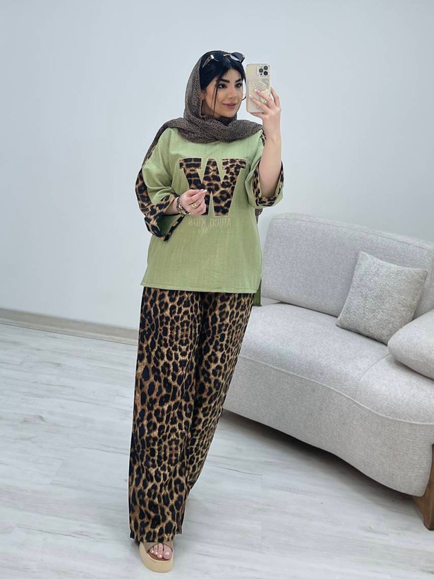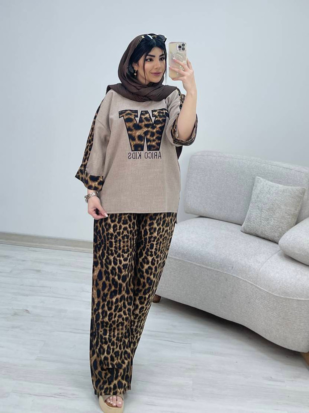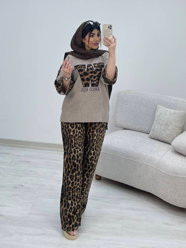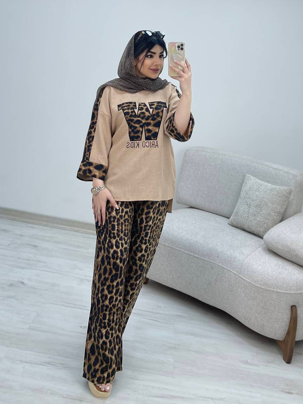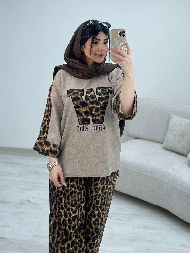 ست شومیز شلوار شانتون اعلا پلنگی