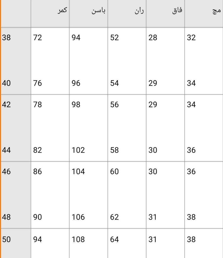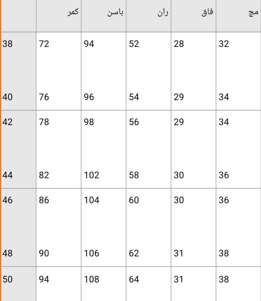 📌سایزبندی ۳۸ تا ۵۰