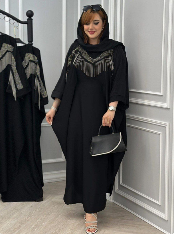 یه عبای مجلسی و خیلی خوشگل براتون تولیدکردیم که خرجکار زنجیریش خاص تر و ارزنده ترش کرده،،بندتنظیم سایزم داره و براهمه سایزی مناسبه😍