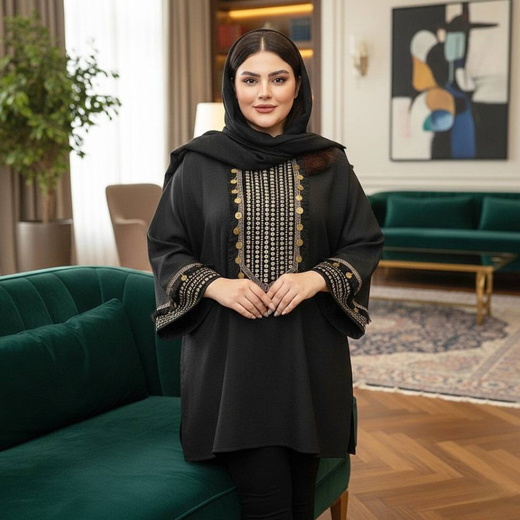 مانتو گلپری جنس صوفیا و خرجکار نوار پولک دوزی و سکه