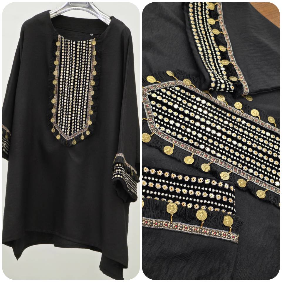 مانتو گلپری جنس صوفیا و خرجکار نوار پولک دوزی و سکه