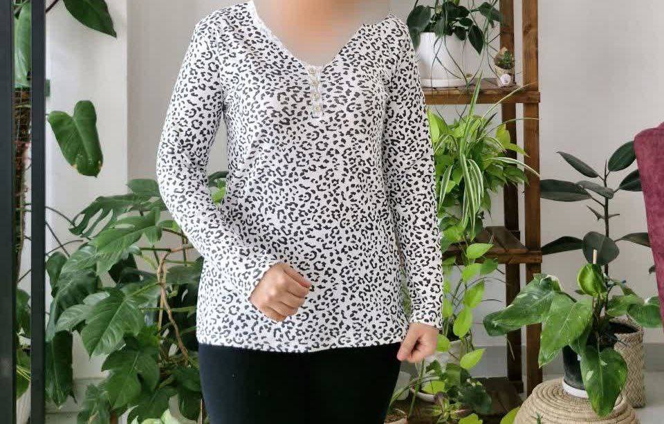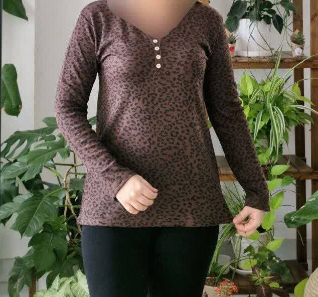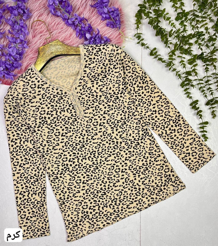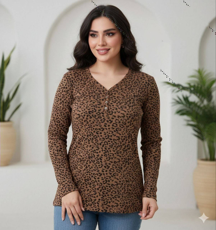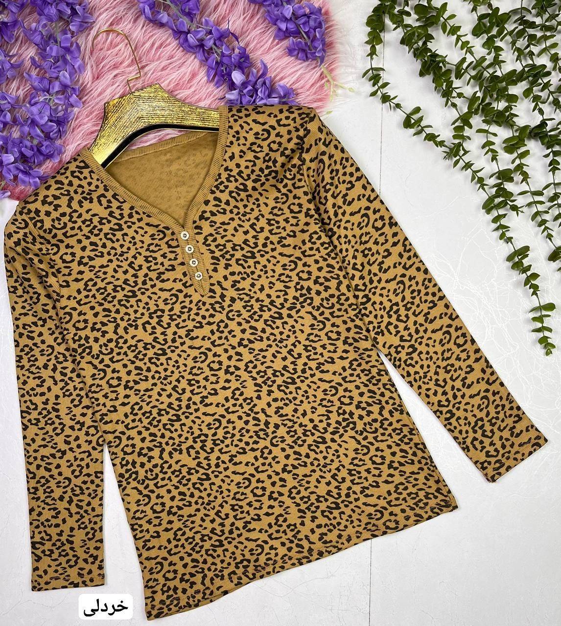 بلوز پلنگی کبریتی آستین بلند