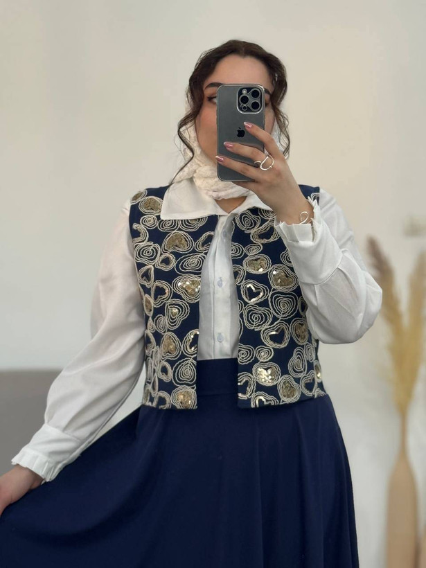 🧵جنس : جلیقه لینن جوت پولک دوزی درجه یک