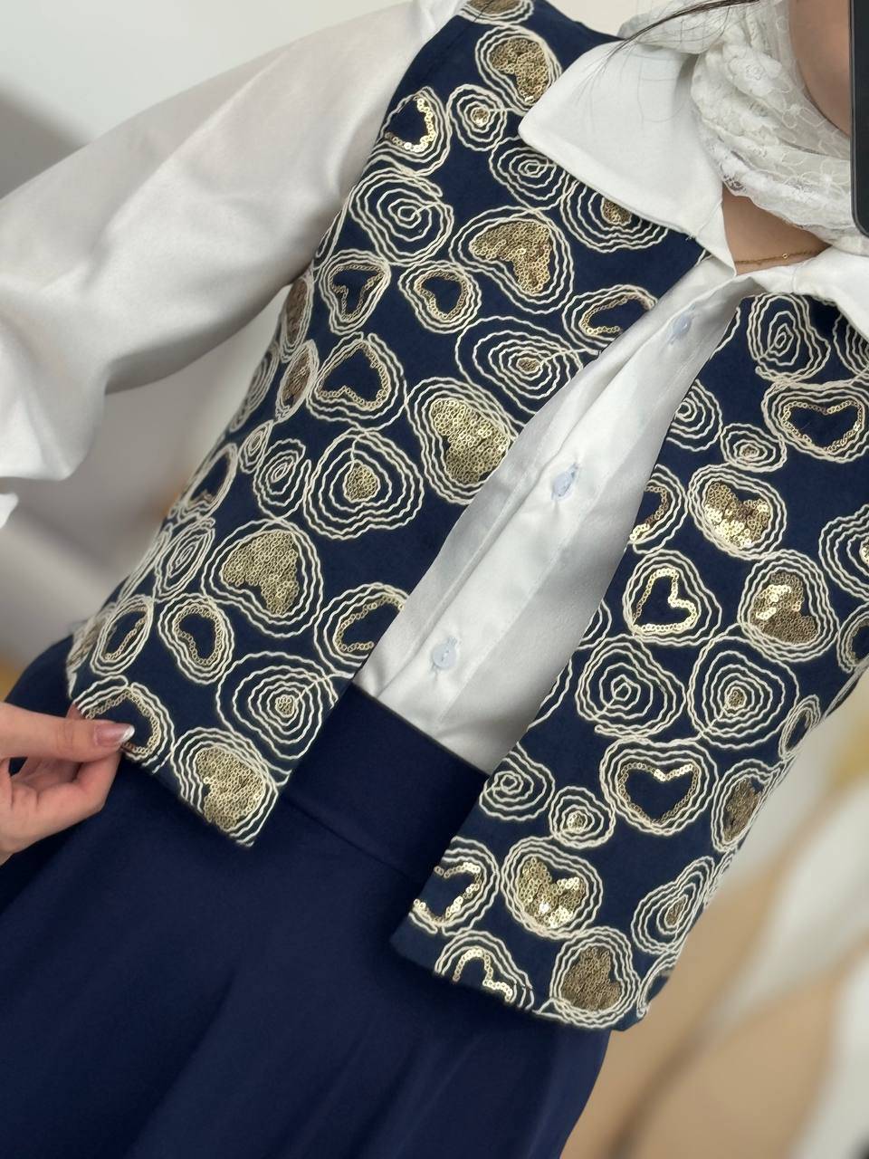 🧵جنس : جلیقه لینن جوت پولک دوزی درجه یک