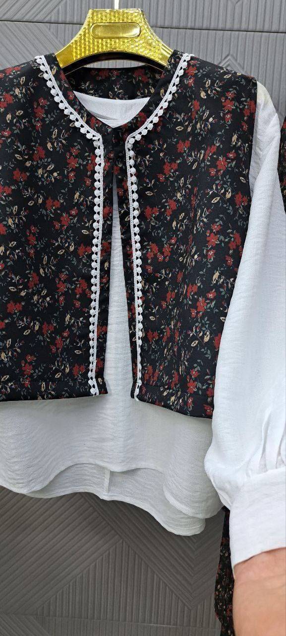 📋 توضیحات: ست شومیز جلیقه و دامن یعنی شیکپوشی با راحتی ترکیب میشه! 💖
