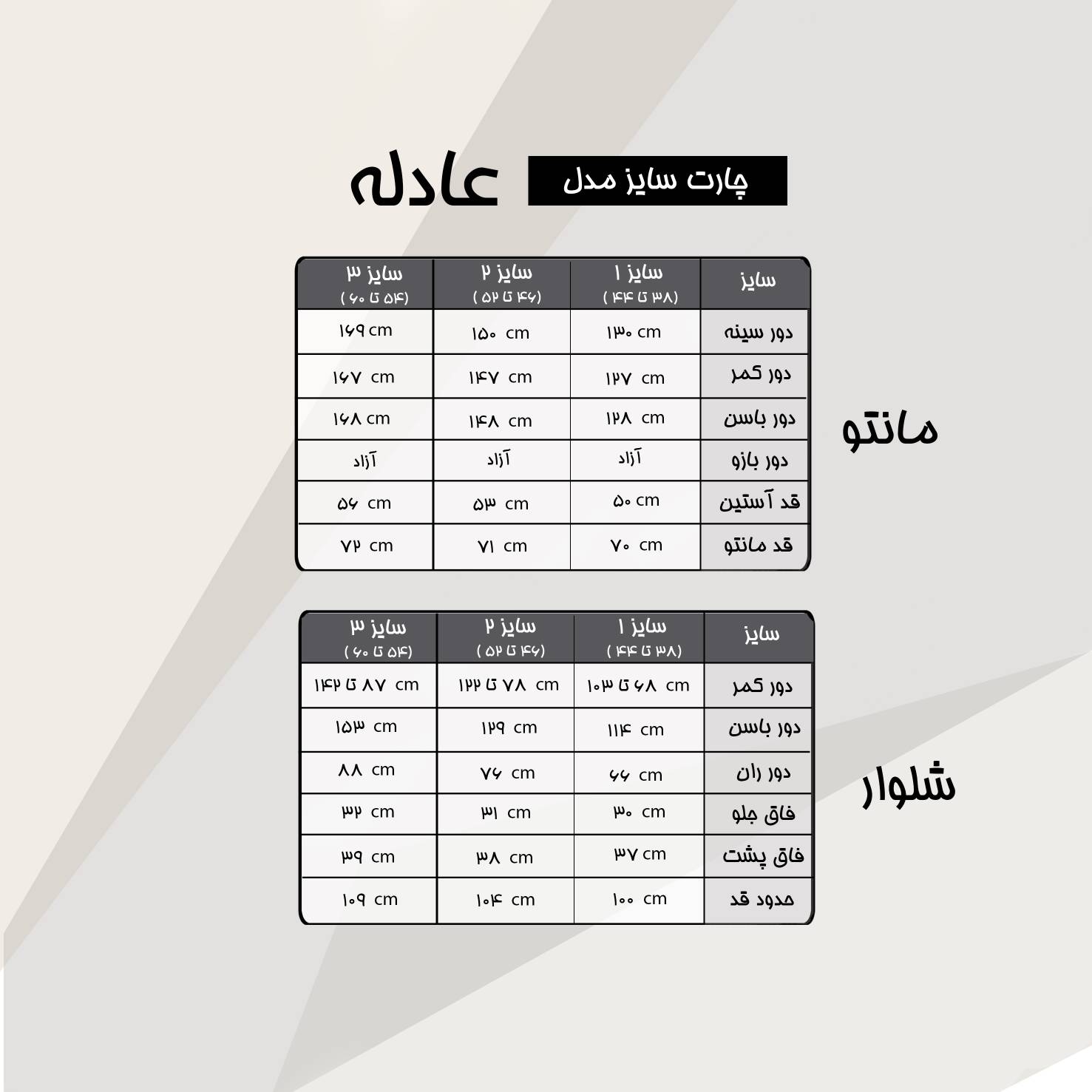 مانتو حدود قد : 70 الی 72 شلوار حدود قد : 100 الی 109