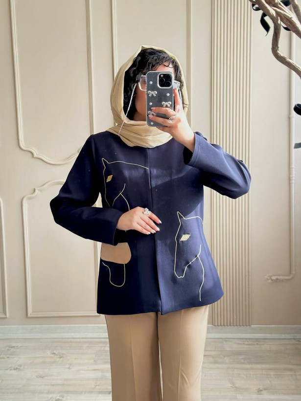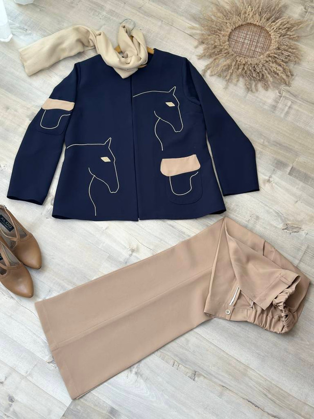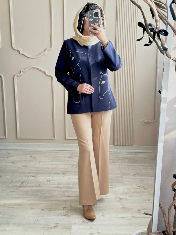 رنگ سرمه ای با شلوار کرم ست شده