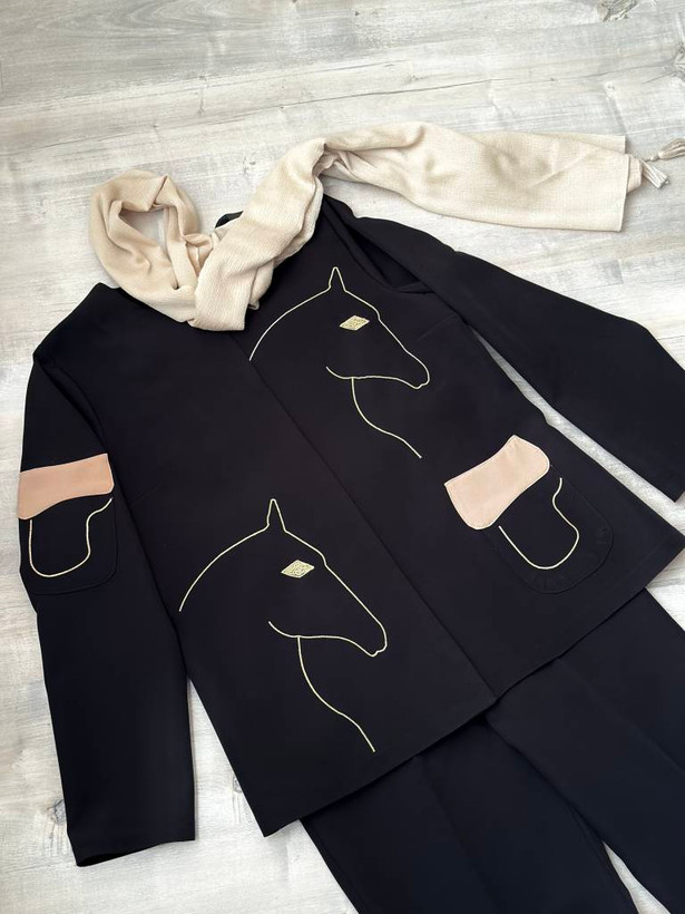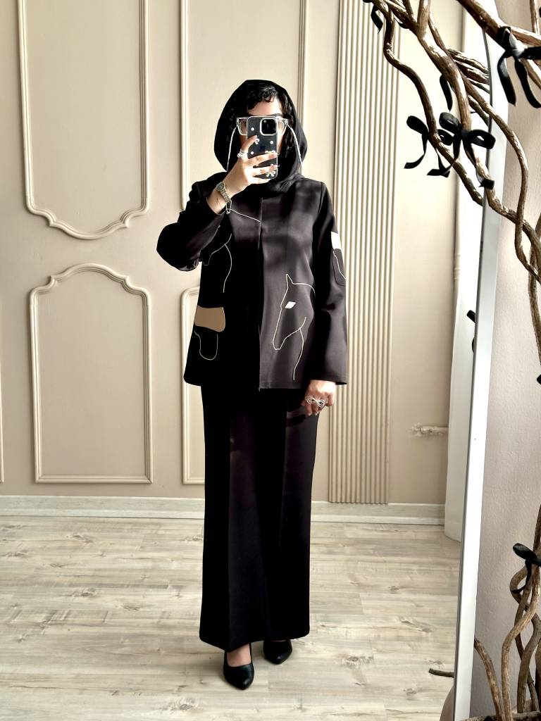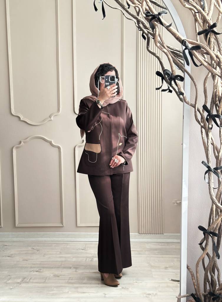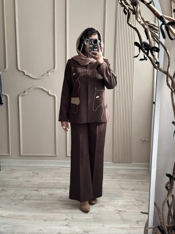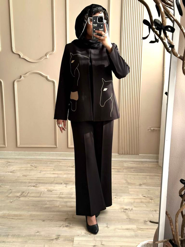 رنگ مشکی و قهوه ای با شلوار هم رنگ ست شده