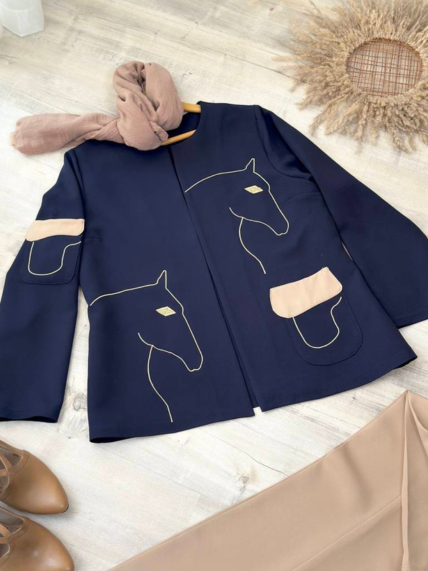 تیکه دوزی در قسمت پایین مانتو و بازو آستین