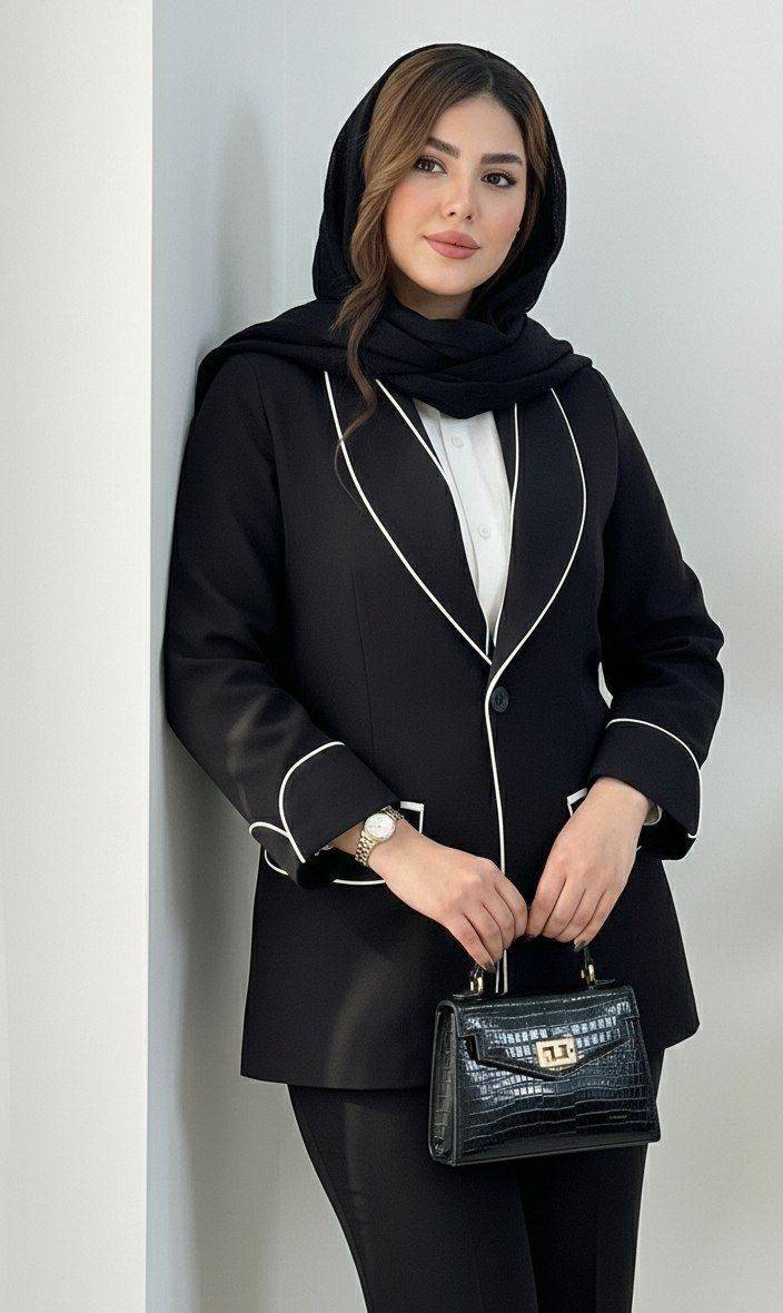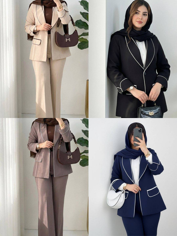 🪽جیبهای شلوار کاربردیه و پشت کمرش کش داره، یقه و سجاف کت لایی خورده که خوش ایست باشه، پارچه بدون ابرفت و پرزدهی.دوخت مزونی درجه یک