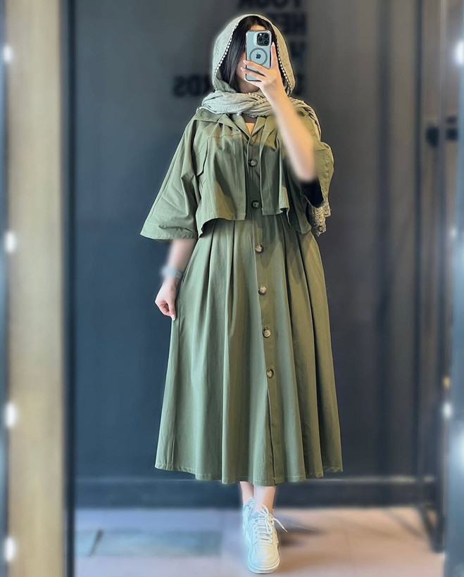 توضیحاتقدکت حدودا ۵۱ قداستین۵۷ دوربازو۵۰ دورسینه ۱۲۰ ✅️قدزیره حدودا۱۳۰ دورسینه۱۱۰ ✅️دکمه های جلوی لباس کاربردی میباشد ✅️سارافون کمردارد برای تنظیم سایز
