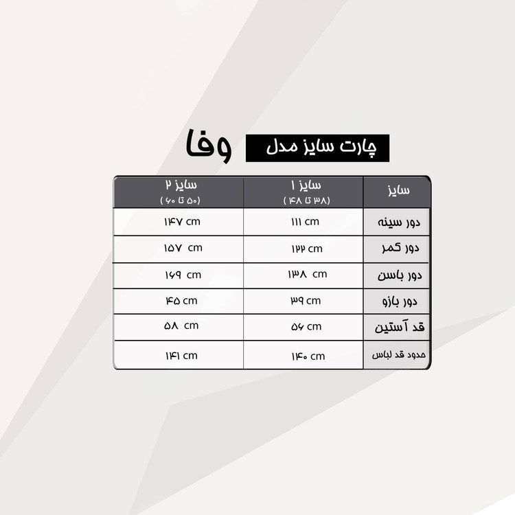 سایز ها : سایز 1 (38تا48), سایز 2 (50تا60)