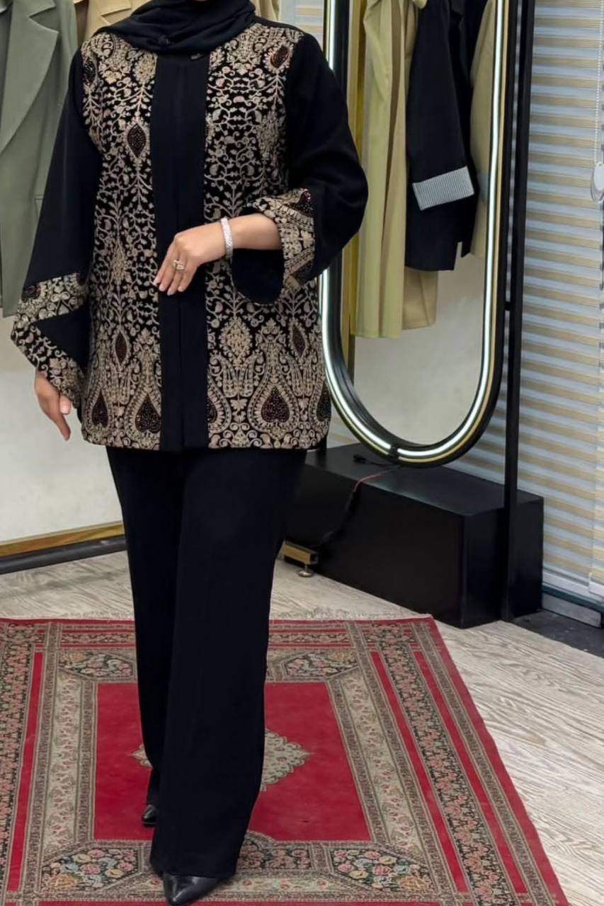 توضیحاتجنس: کرپ مروی جت اندونزی به همراه مخمل سوزن دوزی کل جلوی کار به خاطر ایستایی بهتر لایی پرشین خورده سایز :۲ سایز سایز ۱: ۳۶ تا ۴۲ سایز ۲ :۴۴تا ۴۸ قد ؛۸۰
