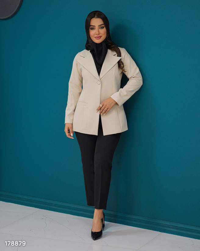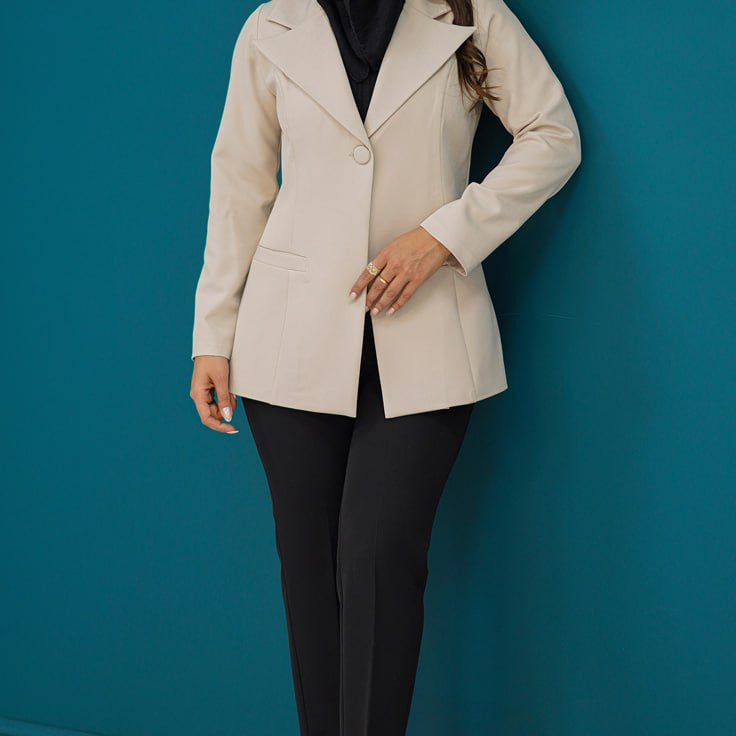 توضیحاتسایزبندی: 1 و 2 و 3 🔺سایز 1 مناسب: 36 تا 38 🔺سایز 2 مناسب: 40 تا 42 🔺سایز3 مناسب: 44 تا 46 🏷دور سینه سایز 1: 94 🏷دور سینه سایز 2: 100 🏷دور سینه سایز 3: 106 🔸جنس پارچه: مازراتی 🔸جیب نما 🔸تک دکمه 🔸جلو لایی 🔸مدل یقه: انگلیسی 🔸قد : 72