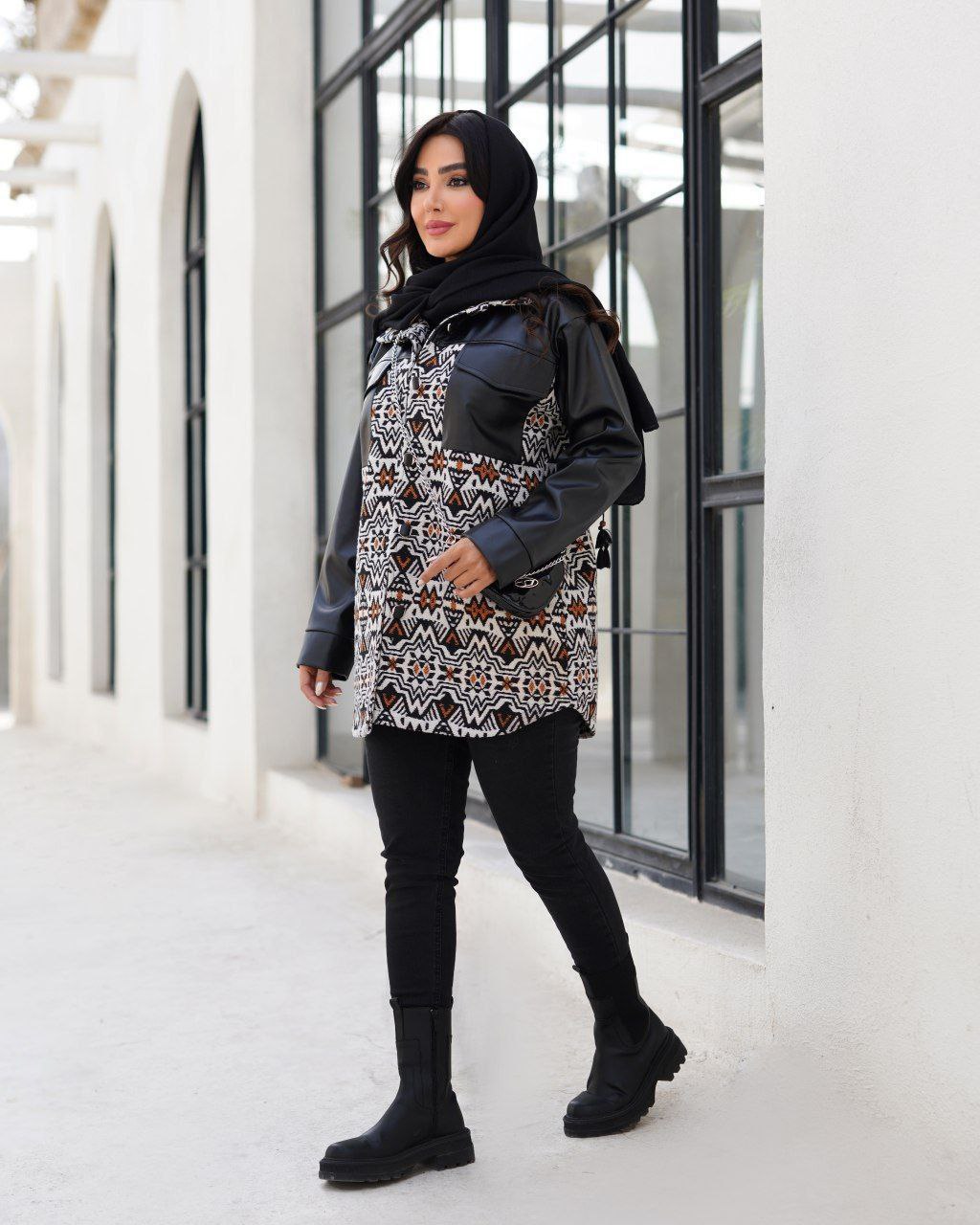 توضیحاتپالتو کتی ترکیب چرم تیر کمونی ( رزا ) 🌐( کد 51119 )🌐 🧶 جنس فوتر پشمی طرح دار🧶 🍂 جلو کار با دکمه بسته میشه 🍂 ____ ✂️ سایز یک مناسب ۳۸و۴۰و۴۲ ✂️ سایز دو مناسب ۴۴و۴۶و۴۸ ↕️قد 81 ↕️قد آستین 60