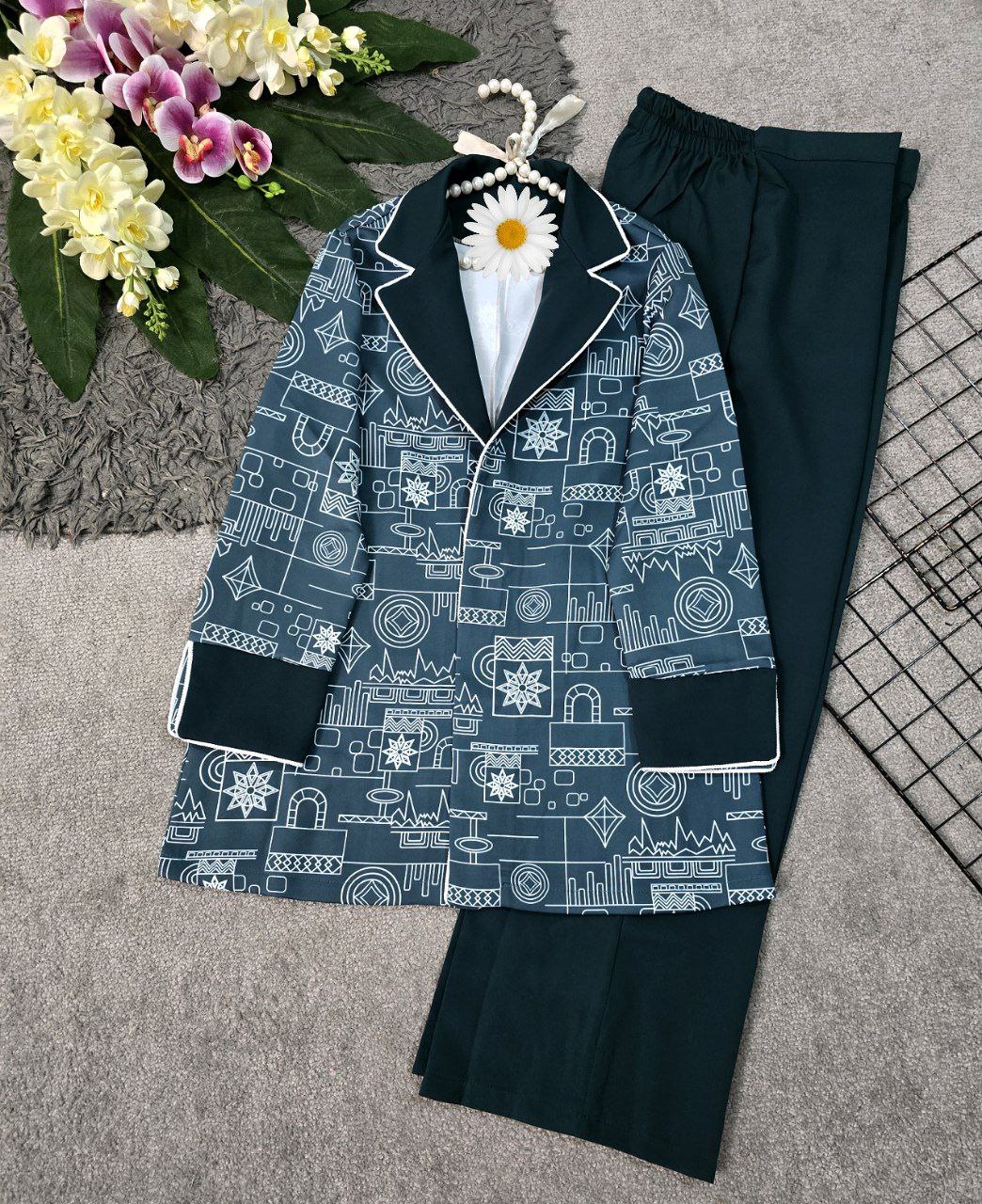 توضیحاتسایز ها : فری 36/46 🌸قد شلوار 103حدودا 🌸قد کت 70 سانت حدودا 🌸دور سینه 107 سانت حدودا 🌸قد آستین 55 سانت حدواد